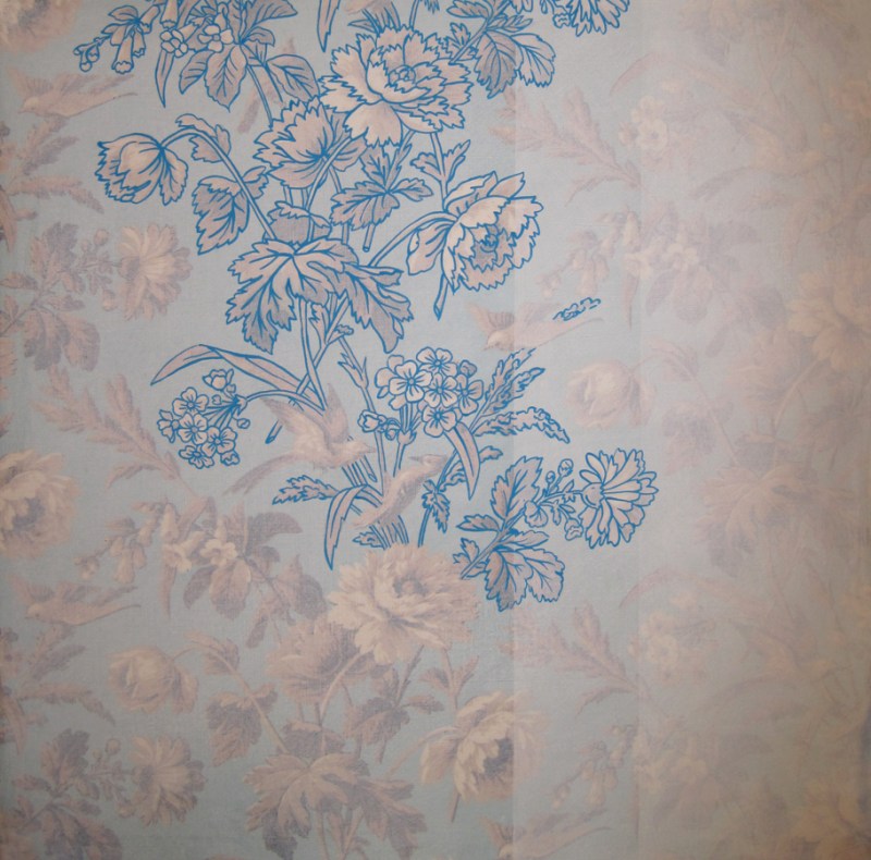 I’ve been working on this piece for a few weeks now. Actually, I stretched the lovely patterned fabric two years ago and then propped it against the wall in the studio where it has taunted me ever since. I finally picked it back up again on a whim and have been struggling to come up with something that does not scream “cover over me with gesso.”