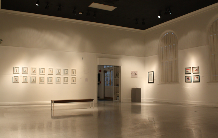 So, I’m as good as done now that my thesis has been successfully submitted. Now I just have to wait for the graduate schools approval which, like most responses in life, will take 2-3 weeks. On that note, I thought I’d post some gallery shots of my thesis exhibition, Eulogy.