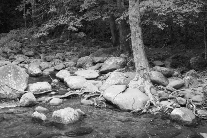 We stopped at Big Creek in the afternoon, a beautiful little picnic and hiking area about an hour away from Cataloochie Valley, to cook some veggie dogs over a camp fire. It was mostly abandoned, offering peaceful moments in which to watch butterflies dance over the river and crows hop from rock to rock in search of tiny fish in the still parts of the river.