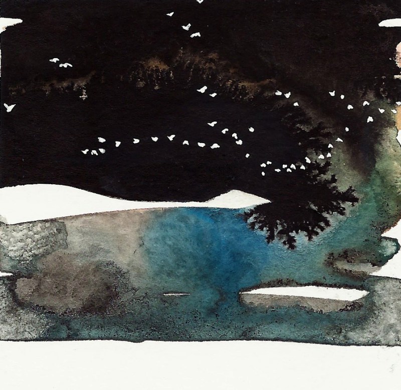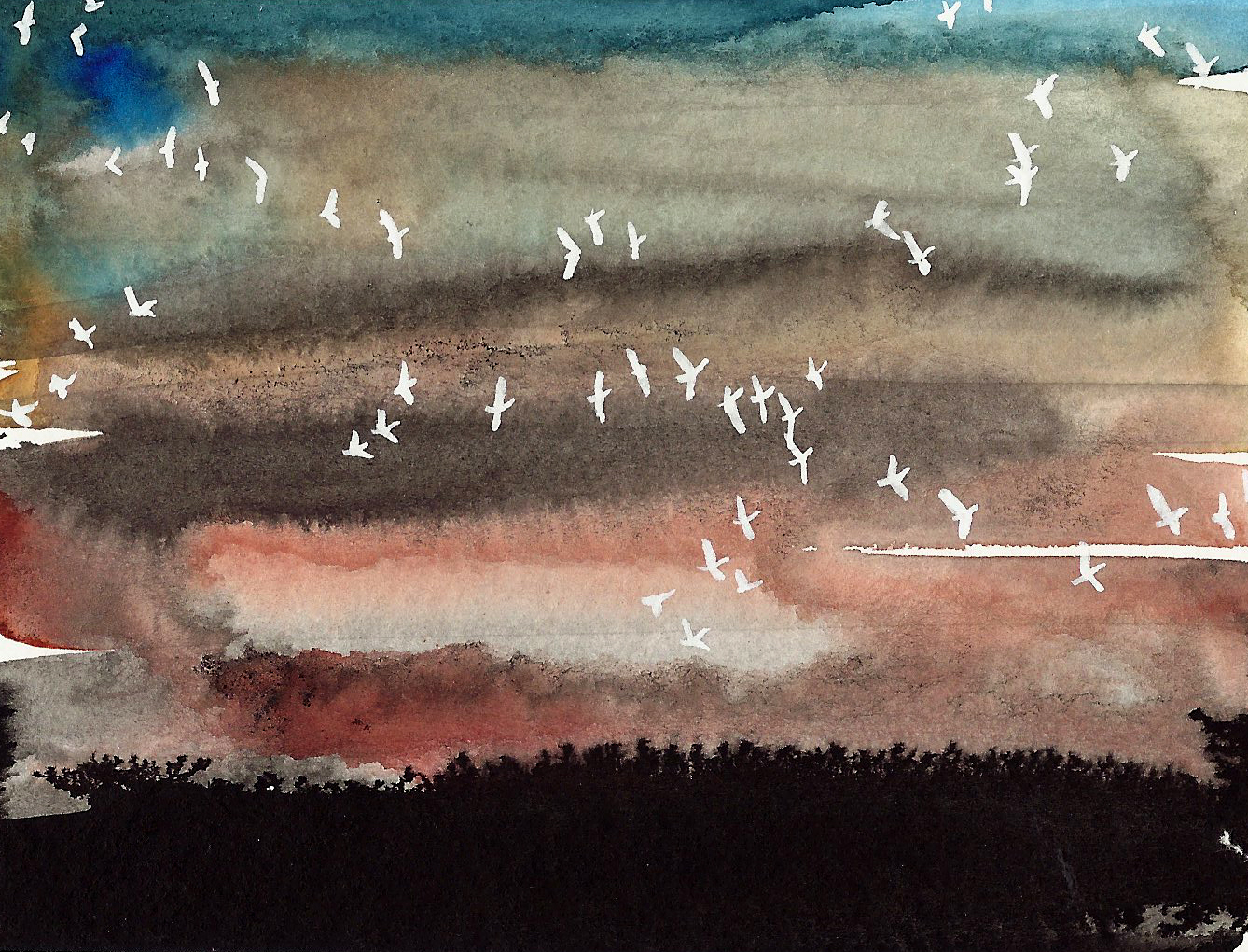 Over these vision-scapes flocks of birds fly toward unknown destinations. Some birds are larger, clearer, and more articulate, while others are so remote they become merely dots and shapes. Many of these flocks are laid out in patterns which intentionally and exactly mimic the position of stars, creating their own cosmic map as they journey onward. Other patterns simply reflect natural groupings personally captured through field photography.