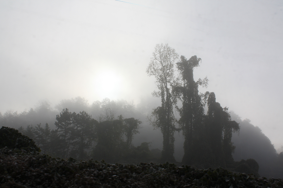 Although it was sadly a bit too cold (low of 22) to go camping in Cataloochee Valley, NC, as planned for my husbands birthday last weekend, we did keep our reservation for the GSMR (Great Smokey Mountain Railroad) the following day. Serendipitously, the cold night that prohibited sleeping outside also facilitated a wonderful fogy frost filled morning (ah, alliteration) which was particularly amazing when seen by train.
