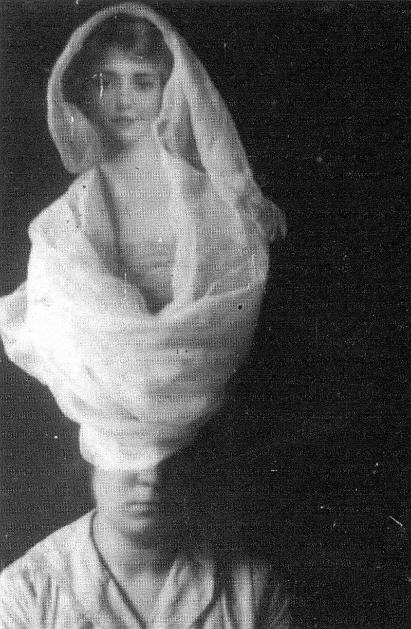 I find that I am most drawn to the photos in which a woman – a ghost – is shrouded and veiled in a gauze or fabric.