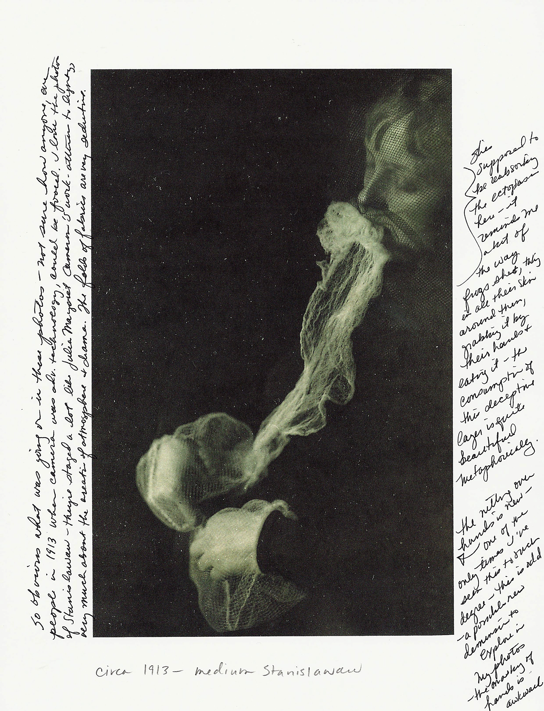 1. I’ve been collecting images of seances, though I’m not sure why yet. It’s funny how you can have a clear attraction to something, but feel uncertain how it pertains to your work/subject. But that’s one of the main things that attracts me to art — how it can surprise you. Without the surprise, the unplanned element, it would be far less powerful.