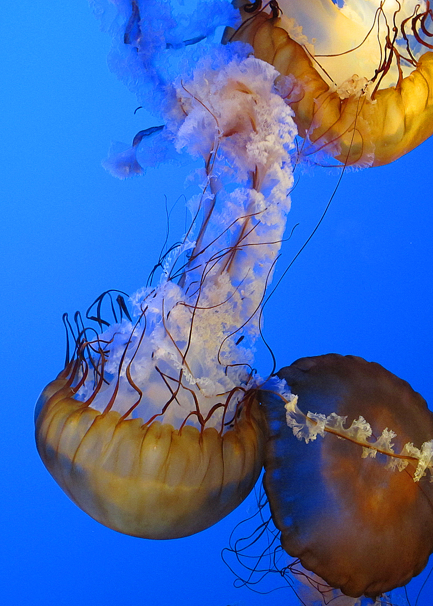 I love watching jellyfish. They are such odd creatures, yet so graceful and beautiful. I can see how their movement would influence the ectoplasmic veils in your work. Thanks for sharing!