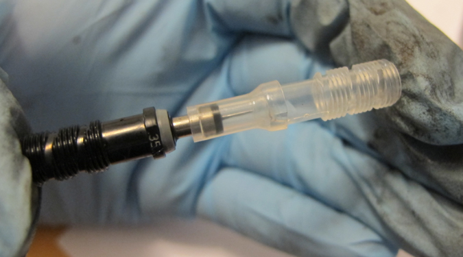 Once you’re pretty good on the basic cleaning level of all the parts you can try to unclog the pin tip – this is really important because if you don’t do this before you try to put the cleansing wire back in you’re going to bend the wire.