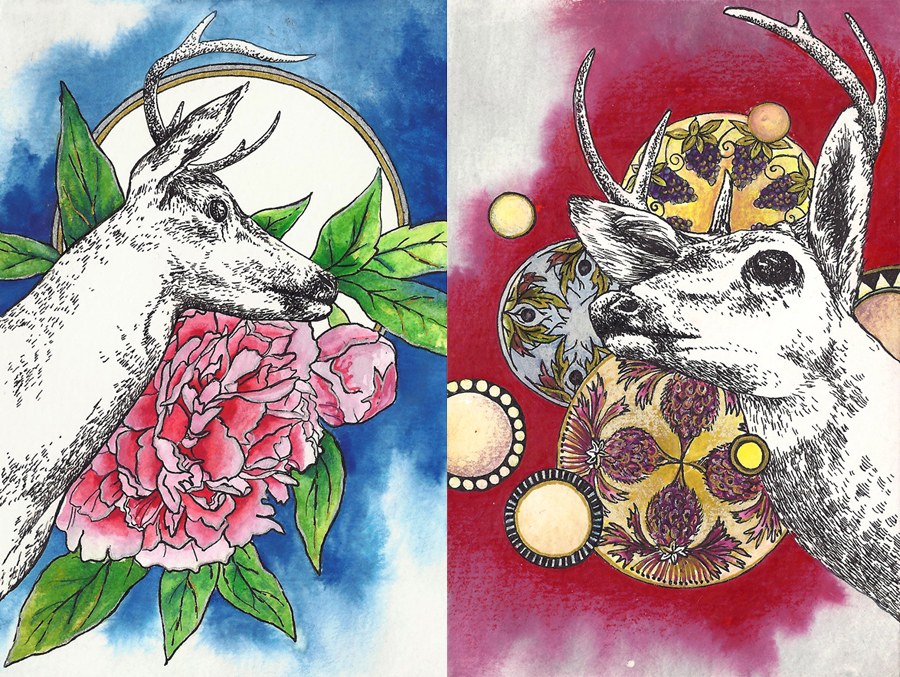 While indoors and off work I’ve found some time to get back to the studio and have been “playing” a bit with techniques, media combinations, styles, and imagery. Since I just got that beautiful deer skull I’ve been working with deer imagery – how very hipster, I know. I don’t care. I like deer, genuinely (therefor technically not “hipster”).
