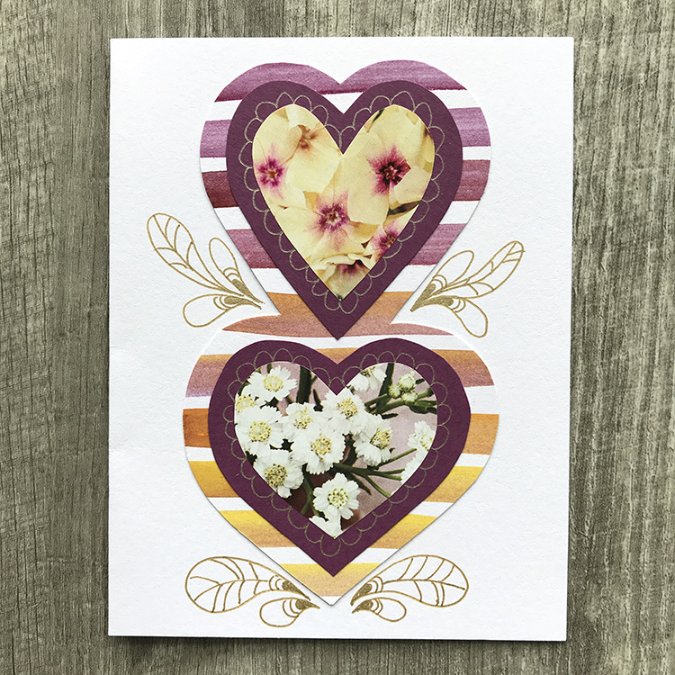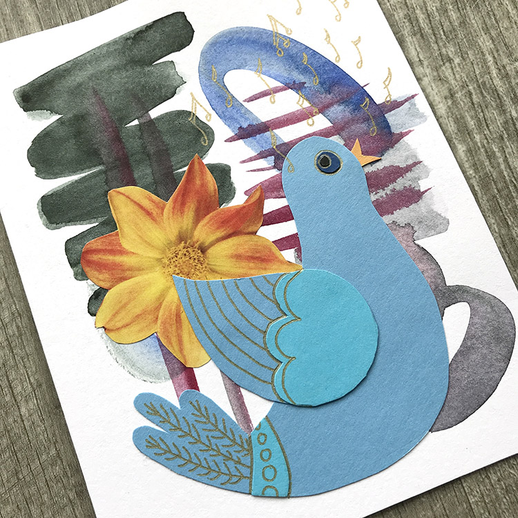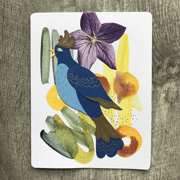 I liked creating the imagery with gestural watercolor backgrounds the most as they seemed to express the energy of spring and growth and the aliveness of summer. I moved to more familiar territory myself a few weeks later when I made the following cards.