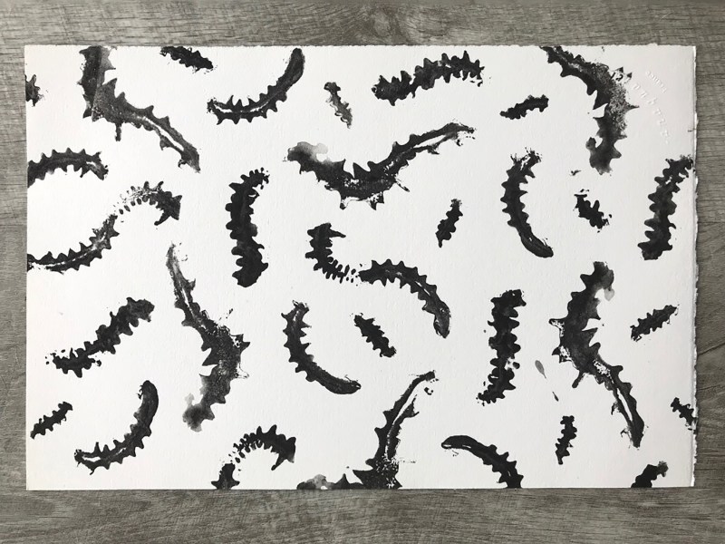 Pieces of this dying cactus created interesting undulating prints.