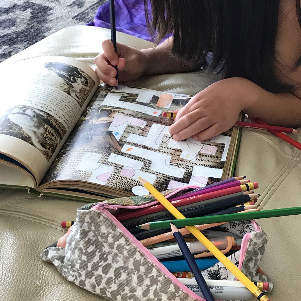 Throughout the pandemic school closures I, like many, rode the waves of depression and anxiety on a weekly basis. I needed an outlet that I could pick up easily and that didn’t require any set materials. The last thing I wanted was to pull out tons of materials and have to put them up again when the house was already a constant clutter fest of kid projects and laundry.
