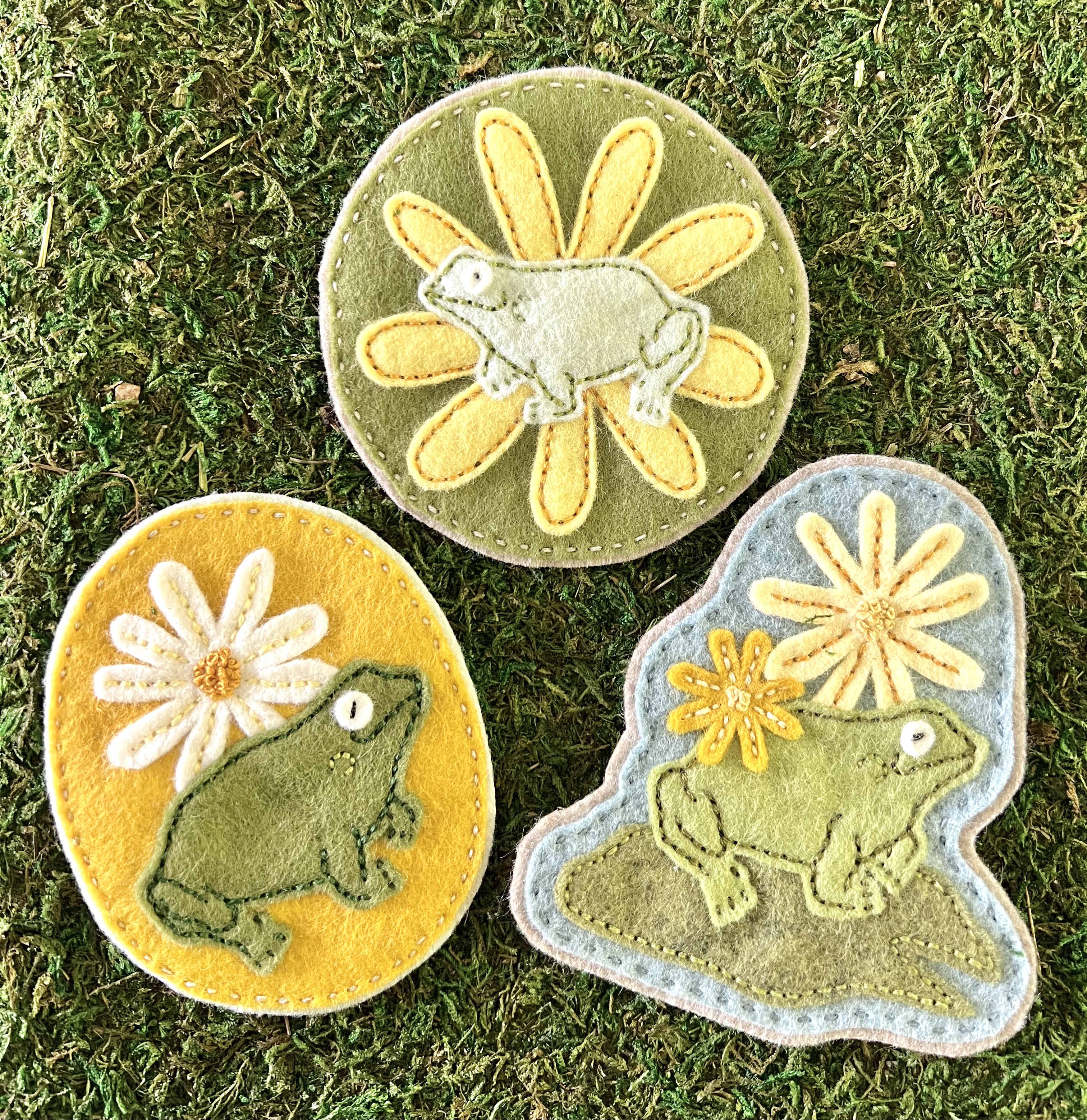 There are so many ways to alter this pin/magnet design to make it your own, I highly encourage you to try it out: add beads or sequins, add lace, alter the shape of the background, mix and match flowers and frogs. It’s up to you! Have fun and if you have questions about the pattern please drop a comment below or DM me at @mlevacy on Instagram.