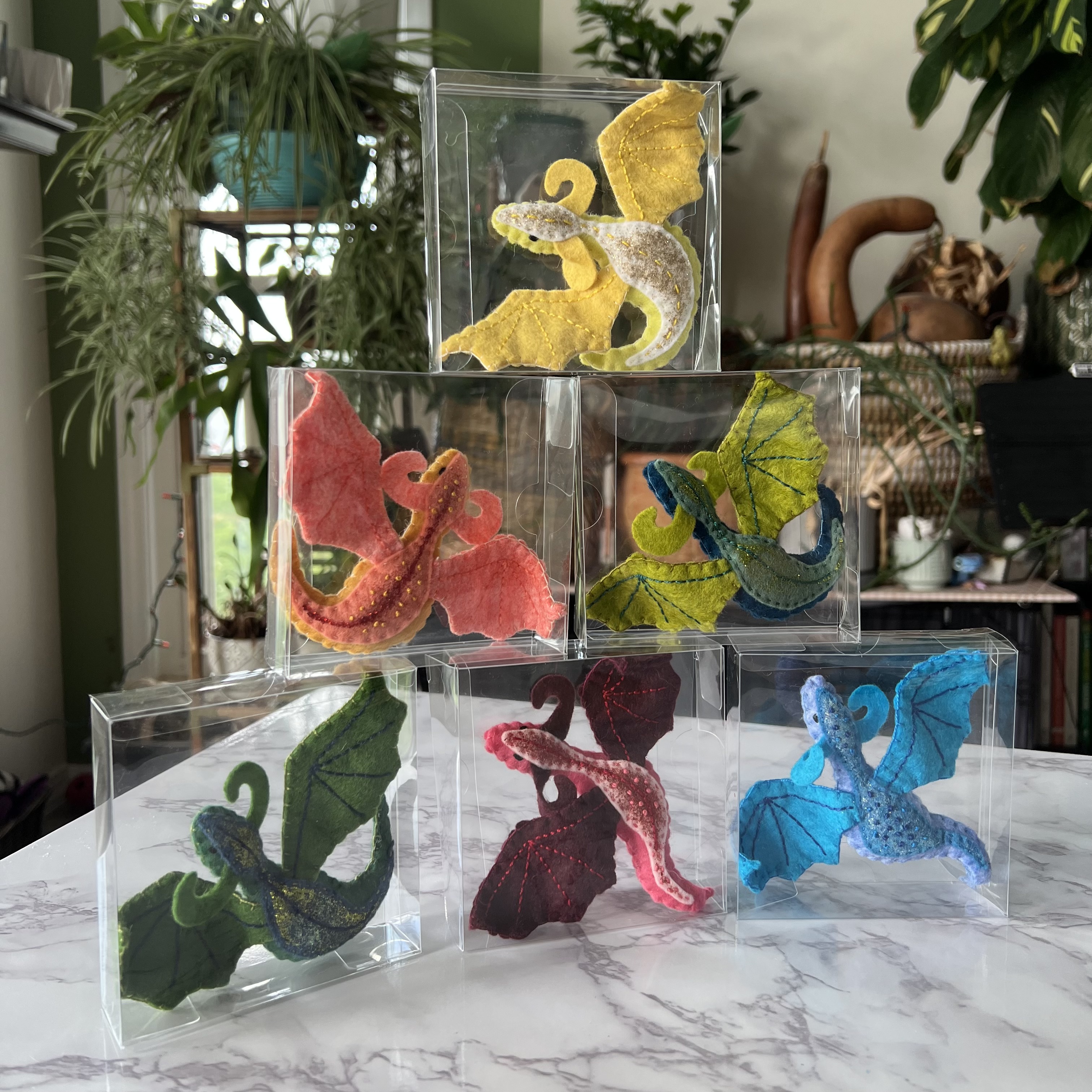 Haven’t you ever wanted your very own dragon but just didn’t know how you’ld fit it in your home? Well, fret no more. This holiday I would like to offer a limited number of commission slots for my original tiny wool-blend felt dragons to appease your need for a fierce but practical companion.