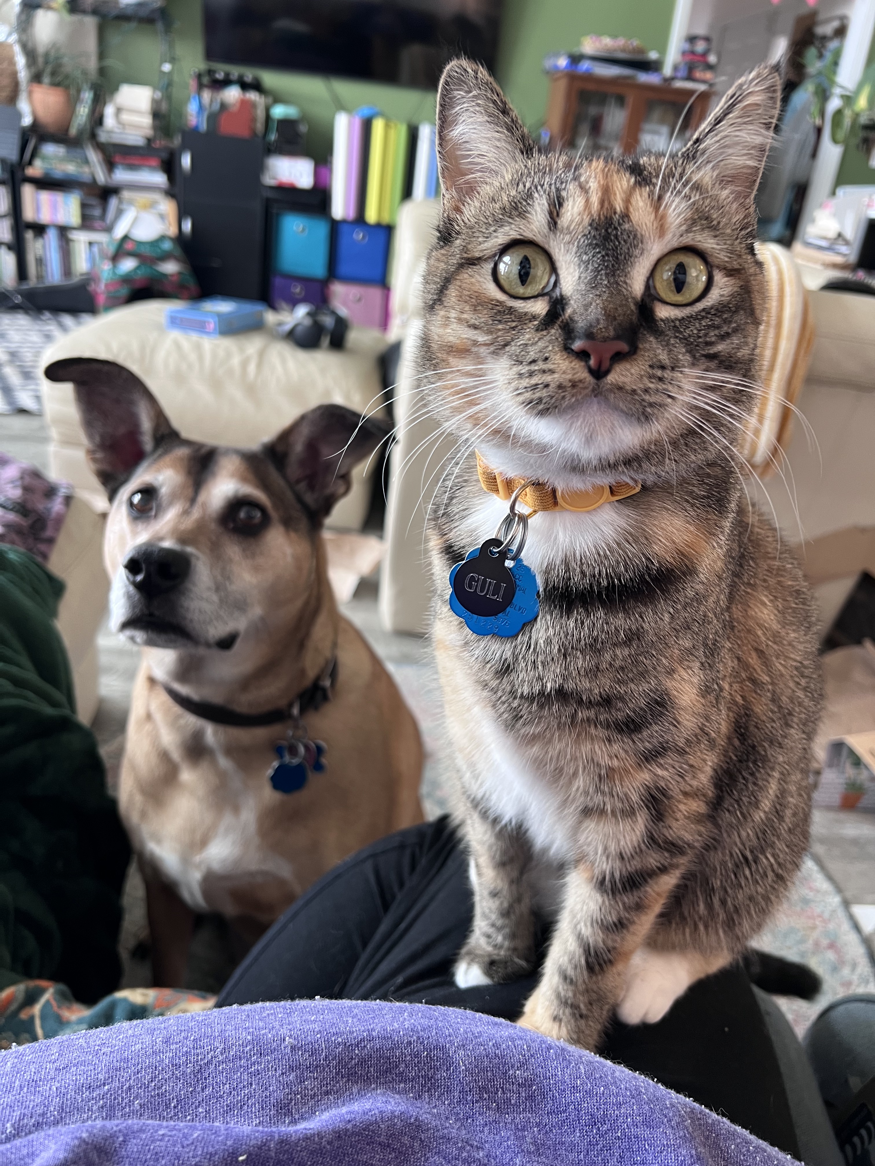 This summer we adopted a kitten named Guli (Goo-Lee). She is the sweetest cat but she’s also a total hooligan. We never know exactly what she’s going to get into and she gets into a lot! I love her dearly though, as does our dog, Miso.