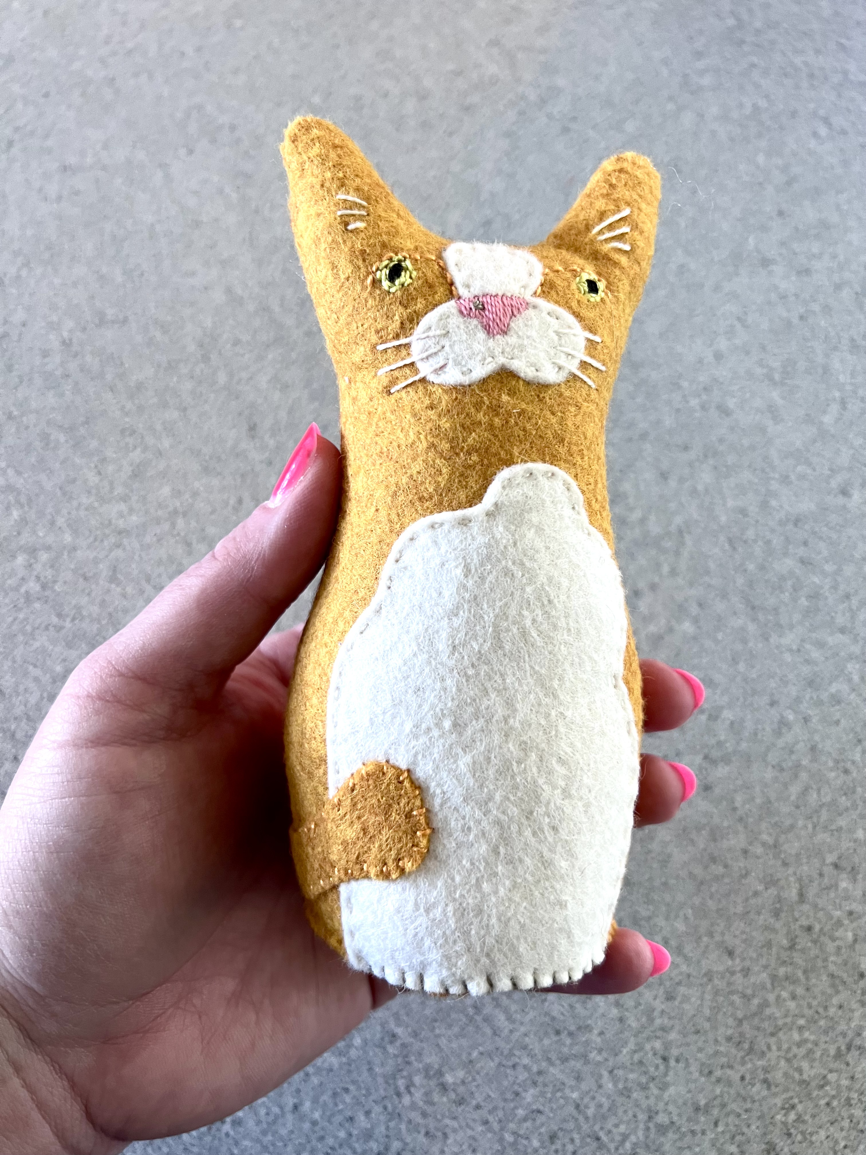 You cats tail can be modified to be poofy or short and you can add stripes or spots onto their bodies for more personalized details. I designed the doll to place more emphasis on the face than on the body. Try different facial expressions and eye colors with your embroidery to really bring out your cats personality.